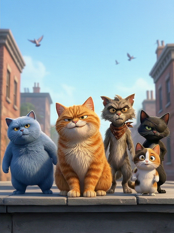 Un gato callejero descarado, impredecible y con una actitud imposible de ignorar.